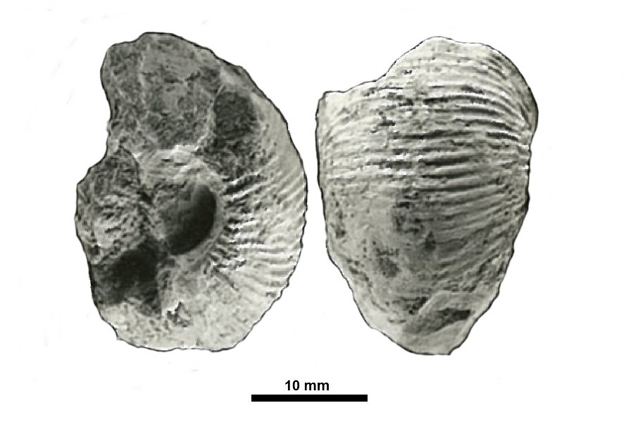 Diagnoza thinly pachyconic shell with an umbilicus that is a little wider than one fourth of the conch diameter; umbilicus with shoulder is broadly rounded; the umbilical wall is oblique; densely arranged concave ribs, standing in distances of approximately 2 mm, they extend with a shallow and wide sinus across the venter; ribs produce an undulated pattern on the surface, and they are arranged in distances of three to four millimetres, are as wide as their interspaces and extend with a relatively high and wide lateral projection over the flanks to form a shallow and wide ventral sinus; sometimes, rib splitting occurs near the umbilicus. Porównanie The specimens from Ostrówka, although not showing sutures, are so characteristically ornamented that at least most of them belong to this typical species of the Erdbach Limestone. Autekologia Występowanie geograficzne Germany (Rhenish Slate Mts.; Harz Mts.), France (Montagne Noire, Pyrenees), Spain (Sierra Morena), Ireland (Dublin County), Poland, Algeria (Sahara, Sud Oranais), Kyrgyzstan (Tian-Shan) Zasięg czasowy Carboniferous; Tournaisian - Visean Materiały muzealne Literatura Dzik, J. 1997. Emergence and succession of Carboniferous conodont and ammonoid communities in the Polish part of the Variscan sea. Acta Palaeontologica Polonica 42, 57-170. Holzapfel, E. 1889. Die Cephalopoden-führenden Kalke des unteren Carbon von Erdbach-Breitscheid bei Herborn. Palaeontologische Abhandlungen 5 (1): 1-74. Korn, D. & Feist, R. 2007. Early Carboniferous ammonoid faunas and stratigraphy of the Montagne Noire (France). Fossil Record 10 (2): 99-124. Schindewolf, O.H. 1951. Über ein neues Vorkommen unterkarbonischer Pericyclus-Schichten im Oberharz. Neues Jahrbuch für Geologie und Paläontologie, Abhandlungen 93: 23-116. Schmidt, H. 1925. Die carbonischen Goniatiten Deutschlands. Jahrbuch der Preußischen Geologischen Landesanstalt 45 (for 1924): 489-609. |