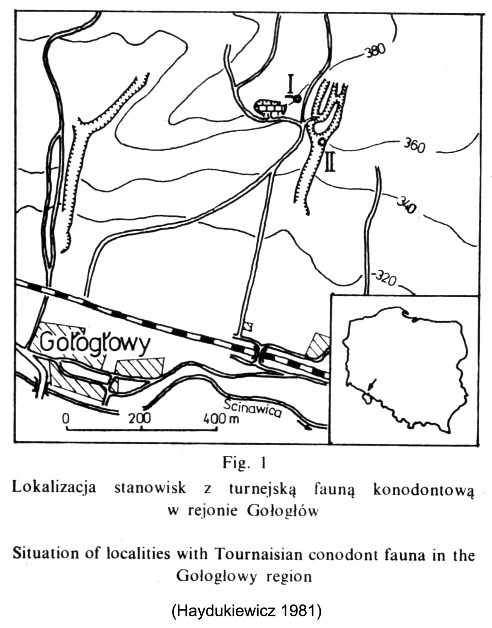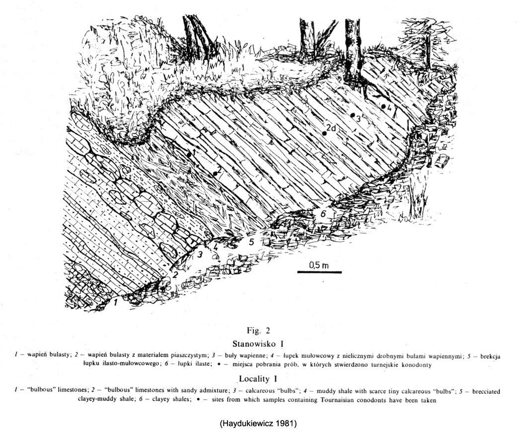 Region Jednostka administracyjna Rodzaj ekosystemu lub jednostka litostratygraficzna morski Opis lokalizacji Odsłonięcia u podnóża wzniesienia (396 m n.p.m.) na północ od wsi. Mały kamieniołom wapieni dewońskich oraz odsłonięcia z łupkami turneju. Wiek geologiczny Lista gatunków konodonty turneju: Dinodus sp. Dollymae hassi Gnathodus antetexanus Gnathodus delicatus Gnathodus sp. Polygnathus communis communis Polygnathus sp. Pseudopolygnathus sp. Pseudopolygnathus triangulus inaegualis Siphonodella sp. Literatura Haydukiewicz, J. 1981. Pelagiczne utwory turneju w południowo-zachodniej części Gór Bardzkich. Geologia Sudetica, 16 (1): 219-226. [Abstract] |