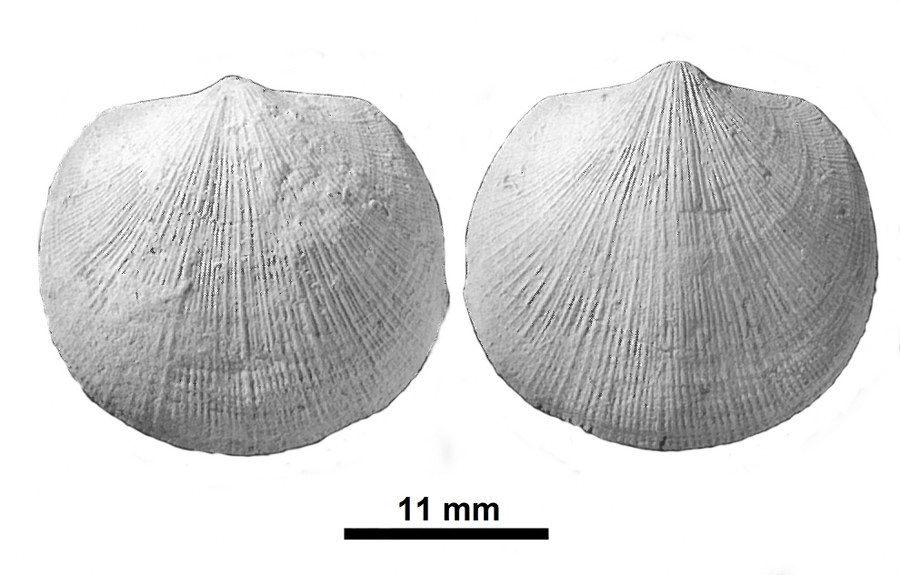 Diagnoza Shell medium-sized to large, moderately transverse, usually aequibiconvex with straight posterior margin and rounded postero-lateral and antero-lateral extremities; maximal width at midlength or towards the anterior margin; maximal thickness in the posterior region; anterior commissure approximately rectimarginate; dorsal valve with very shallow sulcus beginning at the umbo and gradually widening anteriorly; ornamentation of radial costellae, the medium ones straight, the lateral ones bending abaxially; costellae originating by bifurcation at all levels, then gradually thickening. Porównanie Differences between material of Sobolew (1909) and Halamski (2009) apparently result from intraspecific variability. Autekologia Występowanie geograficzne Świętomarz (Holy Cross Mts.), Poland. Zasięg czasowy Mid Devonian, Early Givetian. Materiały muzealne 10 shells, 5 isolated dorsal valves and 2 ventral valves; several fragments (ZPAL Bp 48/26/1). Literatura Halamski, A.T. 2009. Middle Devonian Brachiopods from the northern Part of the Holy Cross Mountains, Poland in relation to selected coeval faunas. Part One: Introduction, Lingulida, Craniida, Strophomenida, Productida, Protorthida, Orthida. Palaeontographica Abteilung A, 287: 41-98. Sobolew, D. 1909. Sredniy devon Kelecko-Sandomirskago Krah. Mat. geol. Ross. 24: 43-536, Plates 2-6; St. Petersburg, Moskva. |