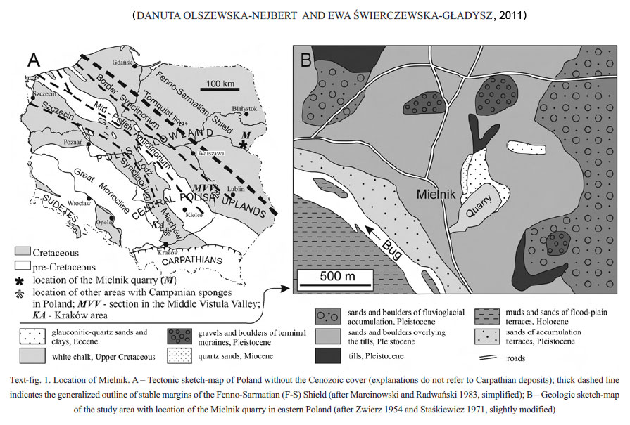 Olszewska-Nejbert, D., Świerczewska-Gładysz, E. 2011. Campanian (Late Cretaceous) hexactinellid sponges from the white chalk of Mielnik (Eastern Poland). Acta Geologica Polonica Vol 61, No 4 (2011) 383–417.