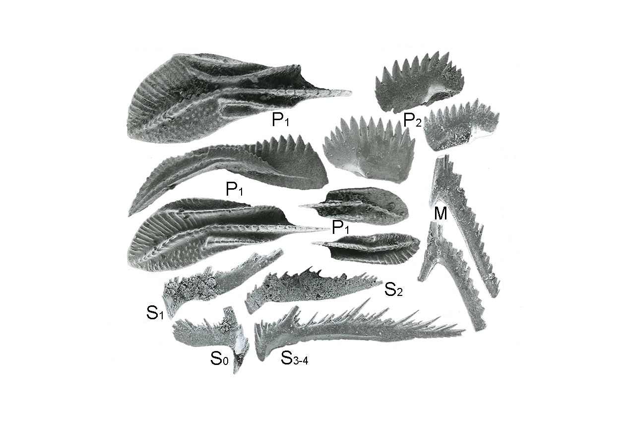 Porównanie Conodonts of this species are the most common near the topmost bed of the Dzikowiec section of the Gattendorfia limestone. Elements P2 are minute, short-bladed, and sharply denticulated. Elements S seem to differ from associated Neopolygnathus purus elements in their shorter processes. The M elements have undenticulated and sometimes almost completely reduced ventral processes. The S3-4 elements are very similar to juveniles of Neopolygnathus, but seem to be separated from them, apart from short ventral processes, in a fan-like arrangement of denticles, usually with the base of the process projecting externally. Autekologia Występowanie geograficzne Zasięg czasowy Tournaisian top of the Gattendorfia limestone. Materiały muzealne ZPAL Literatura Dzik, J. 1997. Emergence and succession of Carboniferous conodont and ammonoid communities in the Polish part of the Variscan sea. Acta Palaeontologica Polonica 42, 57-170. |