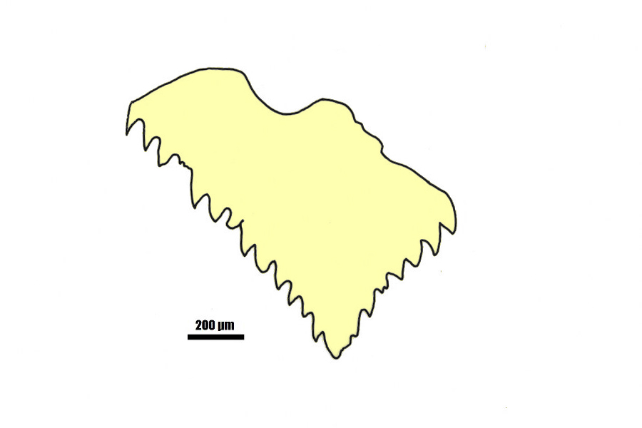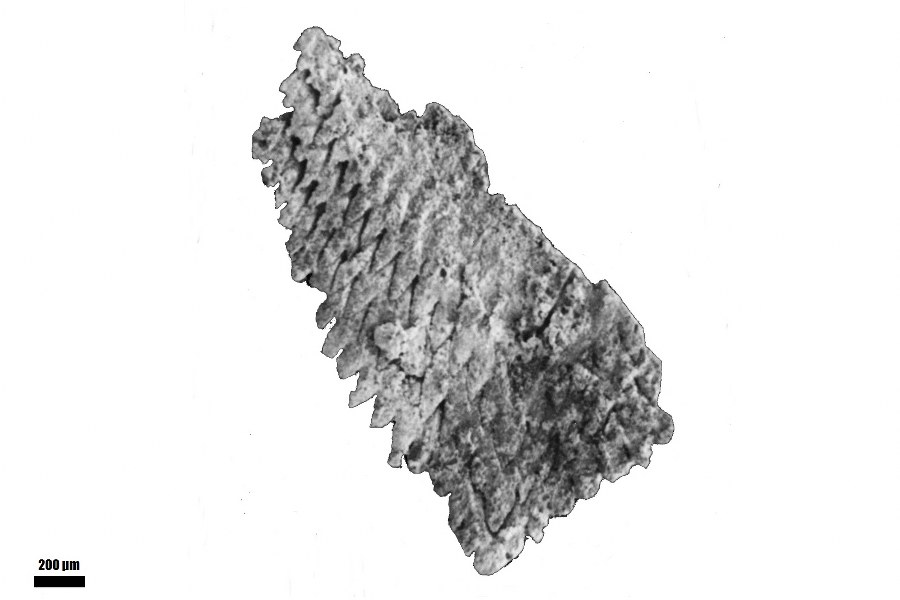 | Diagnoza Emended diagnosis by Boczarowski, 2001: Both distal and proximal margins of goniodonts almost straight V−shaped. The main denticle larger and broader than in remaining denticles. Lateral denticles numerous (26–44), becoming smaller and smaller. The tooth lamina slightly vaulted. The impressions of earlier generation teeth distinct. Porównanie The holotype of Cardioserra minima differs from the holotype of S. minima both in outline of goniodonts and development of teeth. Autekologia Występowanie geograficzne Clasts of limestones in the Carboniferous molasse (Westphalian D) at Falcovec, Bulgaria; set V of the Grzegorzowice Beds at Grzegorzowice; Set VIII of the Skały beds at Grzegorzowice and Zbrza,Holy Cross Mountains, Poland. Zasięg czasowy Late Emsian and Early Eifelian (Polygnathus partitus Zone). Materiały muzealne 11 specimens and 38 fragments of the type series and 89 other specimens. Literatura Boczarowski, A. 2001. Isolated sclerites of Devonian non-pelmatozoan echinoderms. Palaeontologia Polonica 59, 3–220. Romanek, A. 1984. Ophiocistioidea (Echinodermata) z dewonu środkowego Gór Świętokrzyskich. Kwartalnik Geologiczny 28, 547–544. |
