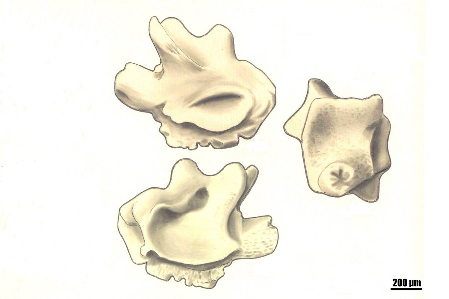 | Diagnoza Up to five mamelons, usually only weakly developed on the narrow outer lateral surface of the lateral plate. Vertical processes of the anchor-like spicules from the central disc are very long and attain up to seven-eighths of their height. Porównanie From Stuertzaster utroquecognitus Boczarowski, 2001 the present species differs in having more elongated lateral plates with few mamelons. Ambulacral plates when compared with those of the other species of the genus are thinner and smooth on the dorsal side; on their ventral side there is a groove, perpendicular to the arm axis . Autekologia Marine epifaunal carnivore; found in limestone and shale. Występowanie geograficzne Outcrop III at Śniadka, Holy Cross Mountains. Zasięg czasowy Early Givetian, Eifelian, Polygnathus hemiansatus Zone Materiały muzealne Only holotype: GIUS 4−439 Śni./877/2 Literatura Boczarowski, A. 2001. Isolated sclerites of Devonian non-pelmatozoan echinoderms. Palaeontologia Polonica 59: 3−220. |