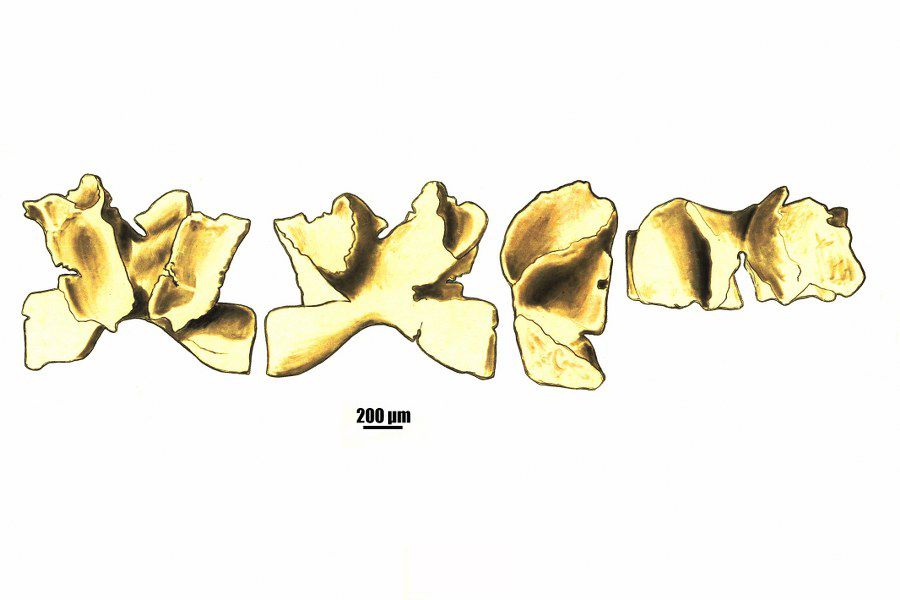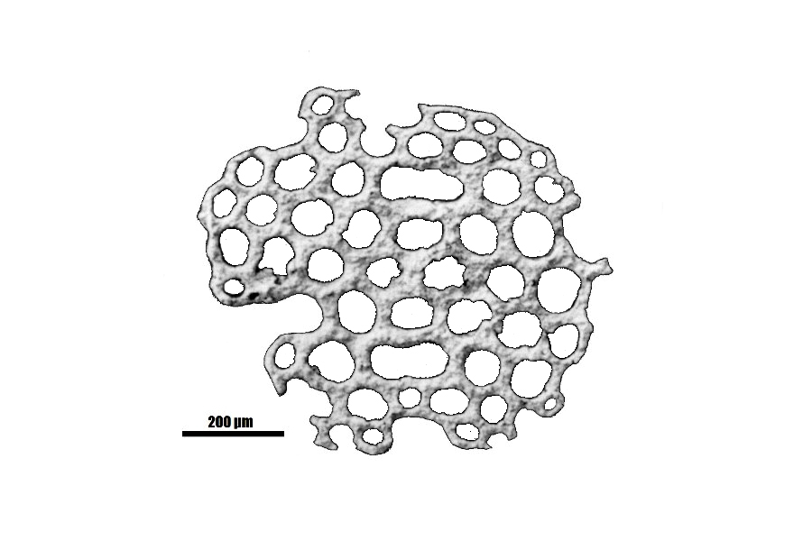 Diagnoza The sclerites completely flat and irregular in shape; pores separated by thick rods and not aligned. A radial plate with rectangular blades on the ventral side of two proximal processes with caverns occurring over almost their entire surface. Porównanie This sclerites differ from those of other species by their flat blade, pore arrangement and the thickness of rods separating the pores. Also the pores are without smooth flanks. Radial plates have a unique development of proximal processes. Autekologia Występowanie geograficzne set V of the Grzegorzowice Beds at Grzegorzowice and set VIII of the Grzegorzowice Beds at Grzegorzowice, Holy Cross Mountains, Poland Zasięg czasowy Late Emsian to Early Eifelian: brachiopod Chimaerothyris dombrowiensis Zone (conodont Polygnathus partitus Zone). Materiały muzealne Holotype GIUS 4−618 Grz./376/1 and > 1003 specimens. Literatura Boczarowski, A. 2001. Isolated sclerites of Devonian non-pelmatozoan echinoderms. Palaeontologia Polonica 59, 3–220. |