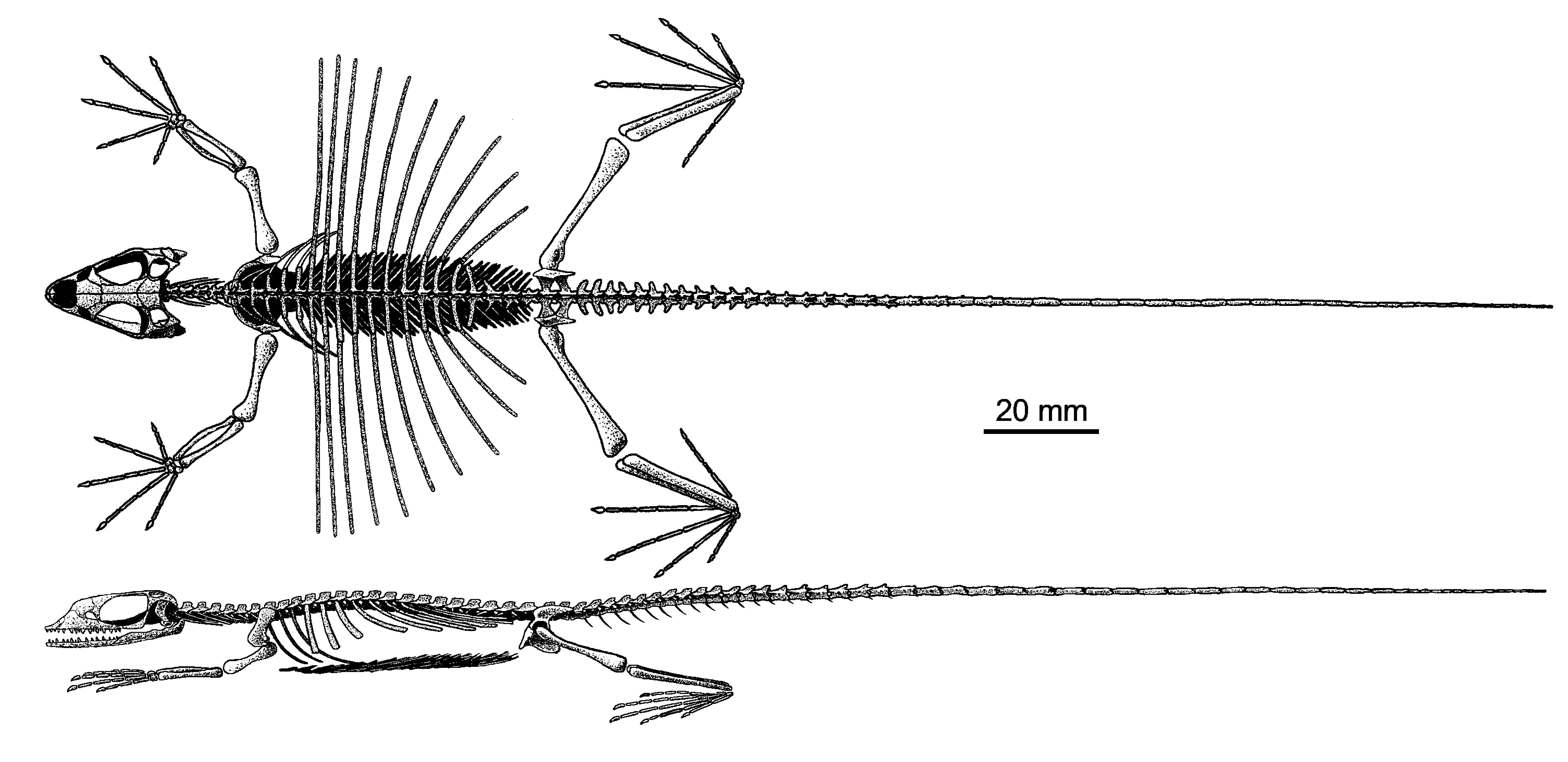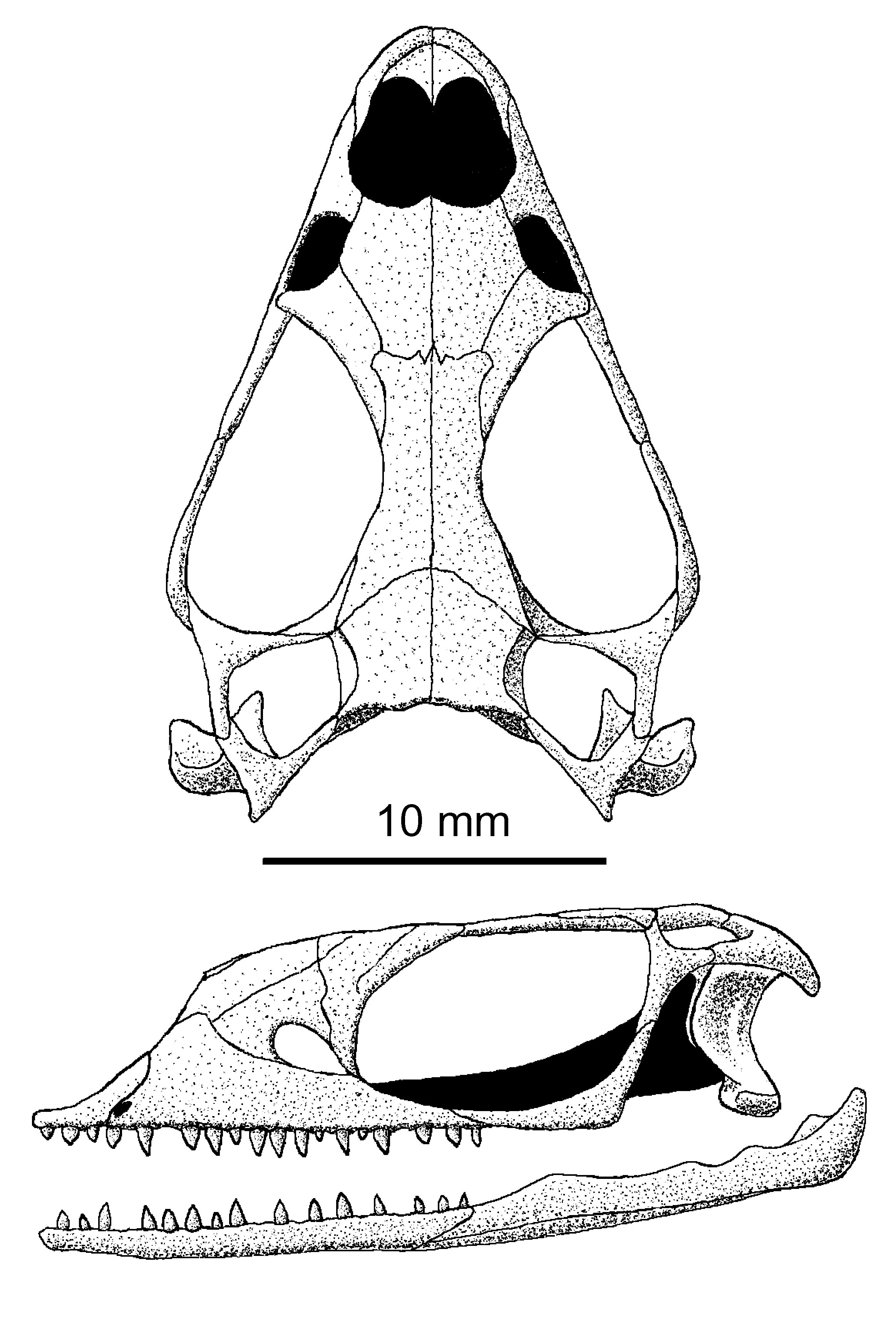 Diagnoza Pamelina differs from other kuehneosaurids in lacking teeth on the parasphenoid, in having more gracile ribs, vertebrae with short narrow tubular transverse processes and only limited buttressing on the vertebral body. From the British kuehneosaurids it differs in lacking three-headed ribs on anterior vertebrae. Porównanie Pamelina is the earliest representative of the specialised kuehneosaurids, predating known British and American taxa by nearly 40 million years. Although the skull is closely similar to those of the Late Triassic genera, Pamelina is postcranially less specialised. Long expanded transverse processes, deep anterior gliding ribs, and strongly buttressed dorsal vertebrae characterise a Late Triassic kuehneosaur clade of which Pamelina is almost certainly the primitive sister taxon. Although Pamelina shows only a partial development of the unique postcranial morphology of the Late Triassic kuehneosaurids, its skull already shares most of the derived characters of the groups (e.g., confluent nares, loss of the parietal foramen, reduced squamosal, relatively large quadrate, loss of the supratemporal). Pamelina demonstrates that major features of the distinctive kuehneosaurid cranial morphology evolved before the development of the specialised postcranium. Autekologia Terrestrial, primitive glider, probably carnivorous (insectivorous). Występowanie geograficzne Only locus typicus. Zasięg czasowy Only stratum typicum. Materiały muzealne Institute of Paleobiology PAN, Warsaw (ZPAL) Literatura Evans, S.E. 2009. An early kuehneosaurid reptile (Reptilia: Diapsida) from the Early Triassic of Poland. Palaeontologia Polonica 65, 145–178. |